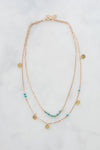 14k gold and turquoise necklace. Stunning beaded turquoise on gold and pendant filled double chain design.