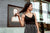 Black cotton top with matching striped skirt.